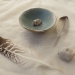 Reis smudge-/altaarsetje met handvervaardigd schaaltje, steengoed gebakken en geglazuurd. Inclusief: handgemaakt lederen zakje (van tweedehands leer), sierkleedje, biologische witte salie, veertje, steentje, mineraal, was- of ekokaarsje en lucifers. Tevens te gebruiken om een kleine ceremonie in de natuur te maken.