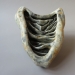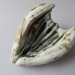Inspiratie was een schelp, verweerd, lagen zichtbaar. Steengoed, diverse glazuren.