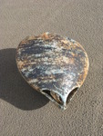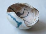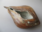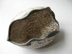 2015Raku gestookt. Net als open turtle shell: een schildpadschild dat van onder open is gewerkt, zodat ook de binnenkant getoond kan worden. Raku gestookt.