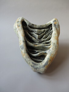 2019Inspiratie was een schelp, verweerd, lagen zichtbaar. Steengoed, diverse glazuren.