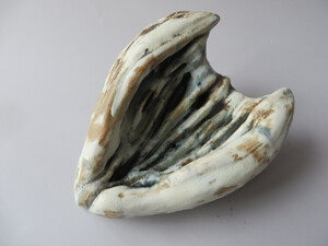 2019Mengvorm schelp en een bot, steengoed, glazuren.