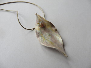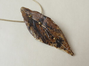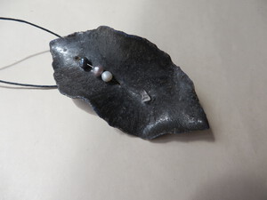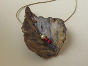 Sieraad bestaand uit een keramisch blad gecombineerd met (parel, edelsteen) kralen.