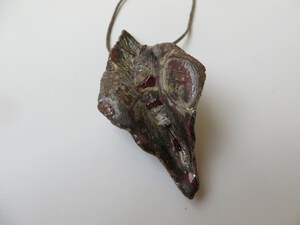 2020Sieraad hanger. Keramisch blaadje gecombineerd met een parel en rode kralen.